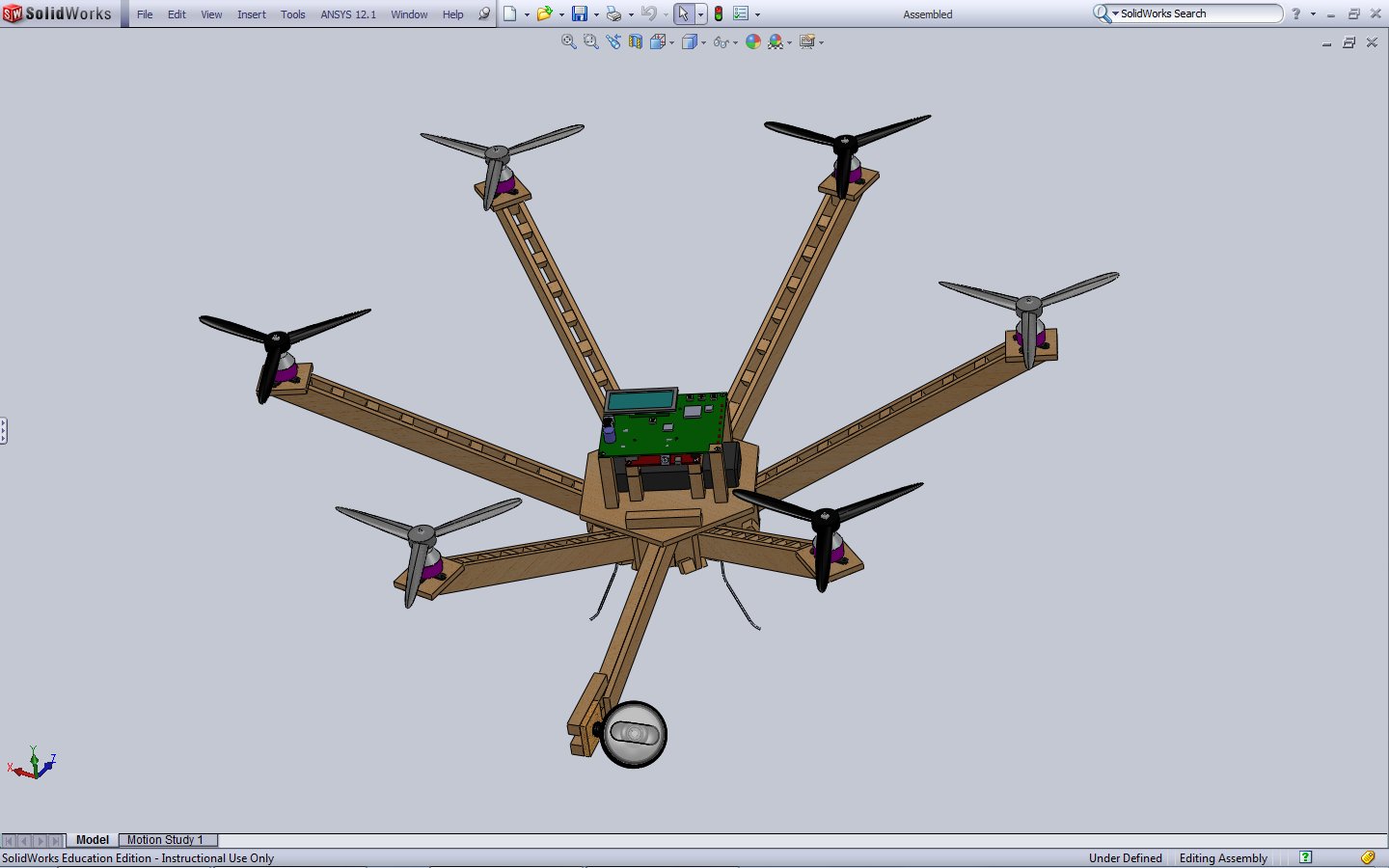 I modeled the drone and Logitech camera with SolidWorks based on what woudl be practical to physically buidl with balsawood.
